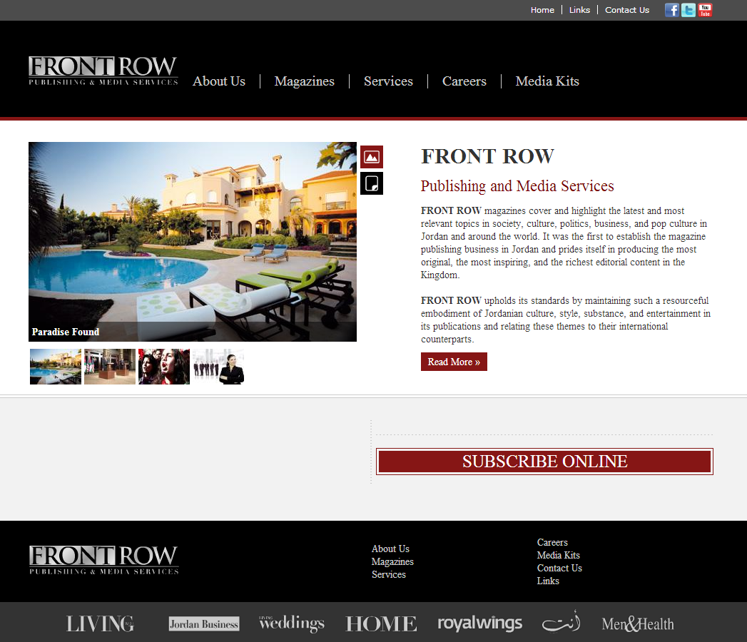 Database driven website, full HTML with CMS for content control. Link: http://www.frontrow.joImage: Type: WebsitePreview Image: Year: 2010Category: PublishingYearField: 2 010