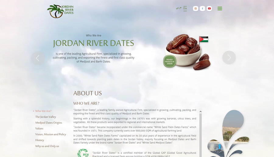 Responsive website with content management system with two languages Link: http://www.jordanriver-dates.com/Image: Type: WebsitePreview Image: Year: 2017Category: Food & BeverageYearField: 2 017